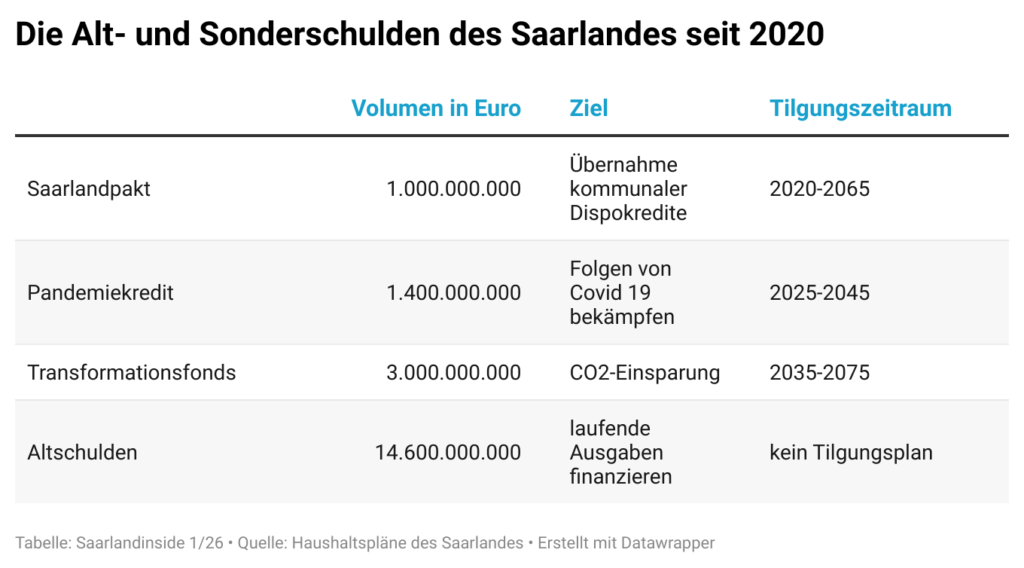 Die Saarländer werden sich fragen, warum sie noch 2075 für Millionen-Defizite im Bus- und Bahnverkehr der 20er Jahre zahlen sollen, oder für die seit den 2000er Jahren versäumte Sanierung von Toiletten, Turnhallen und Schulgebäuden, oder für neue Computer der Landesregierung.